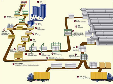 工艺:1.地翻加气混凝土设备 2.空翻加气混凝土设备